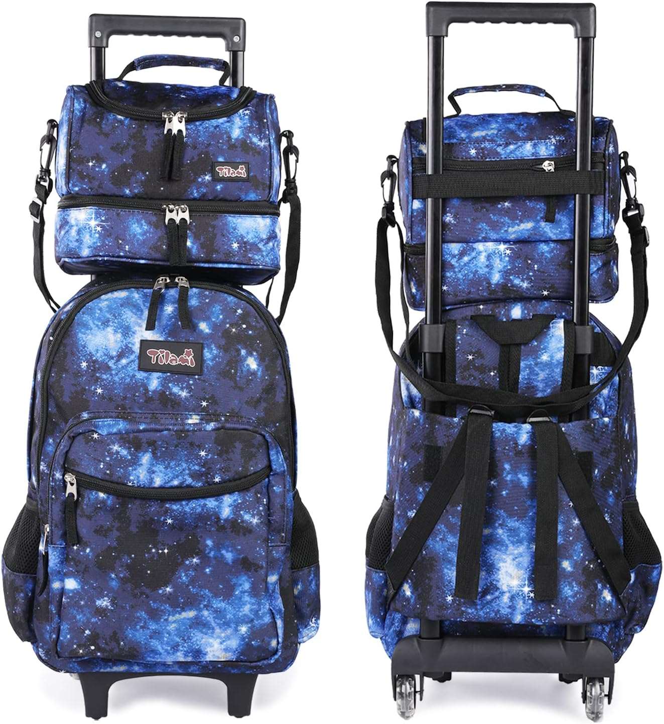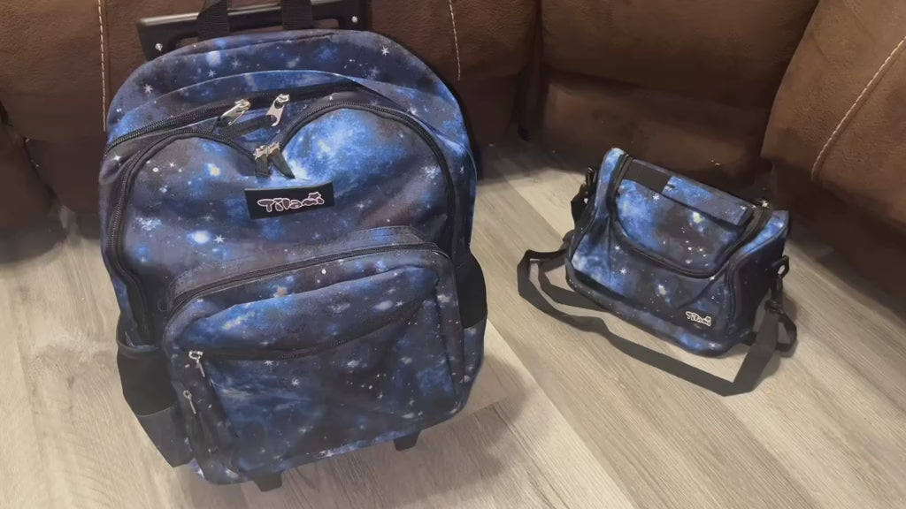 Tilami Galaxy Blue Rolling Backpack 18 inch Double Handle with Lunch Bag
