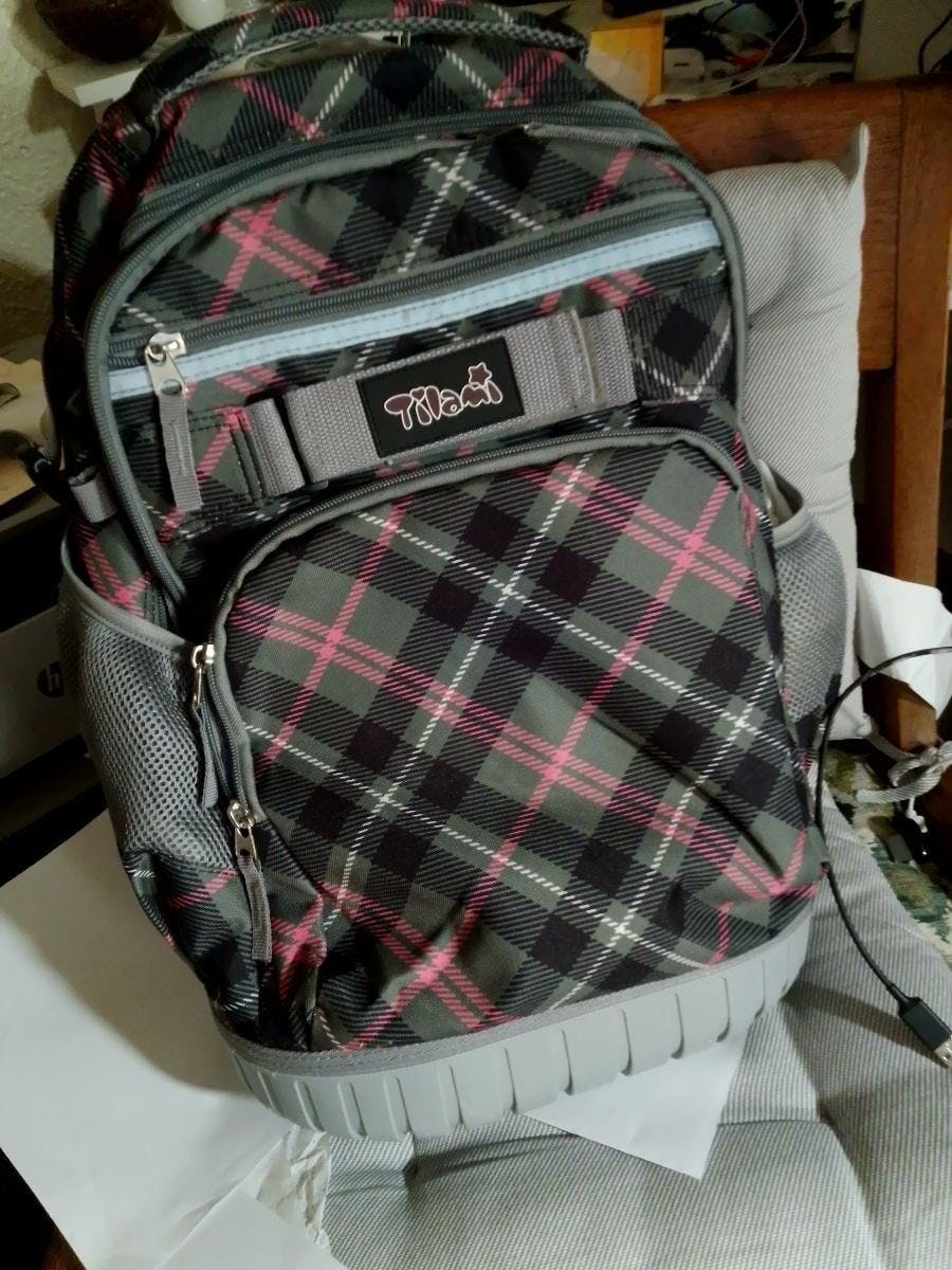 Tilami Pink Plaid 18 inch Kids Rolling Backpack Laptop Backpack