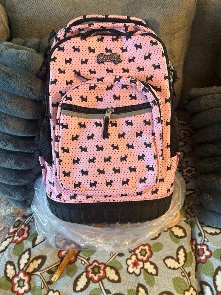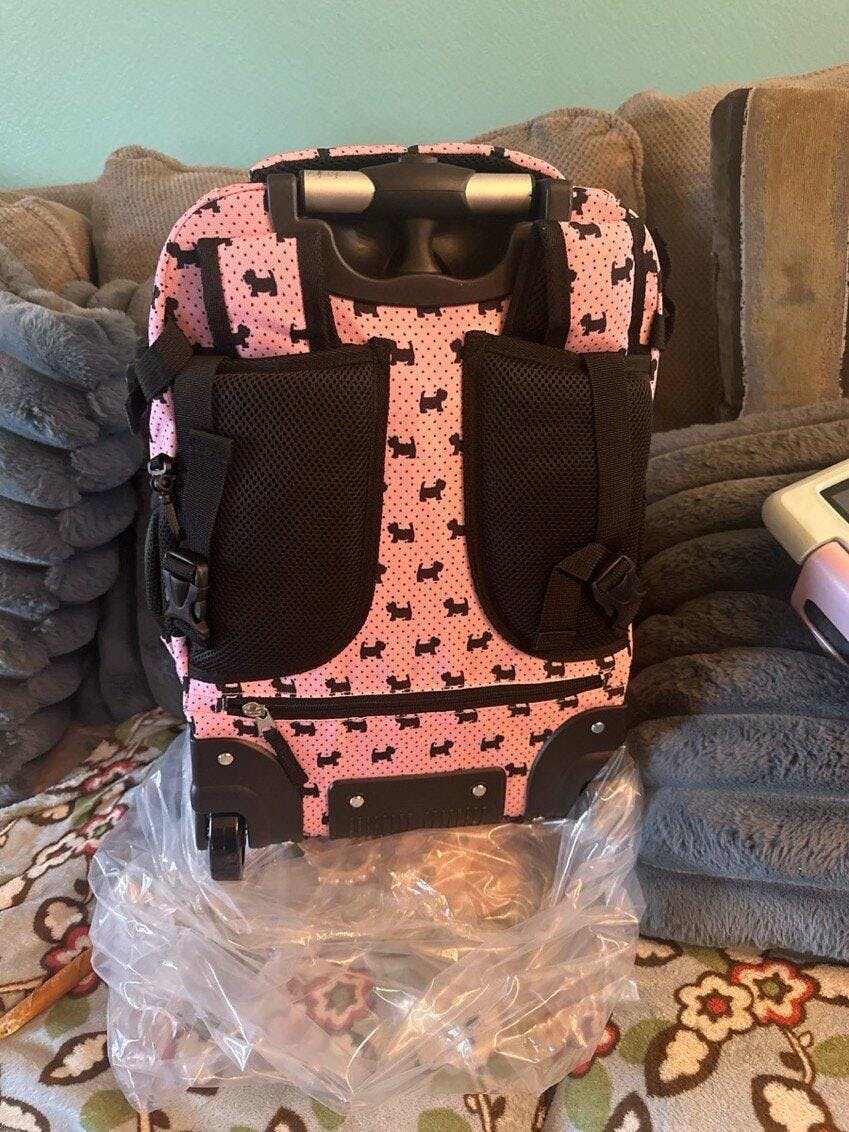 Seastig Dog Pink 18 inch Rolling Backpack for Kids with Lunch Bag and Pencil Case Set
