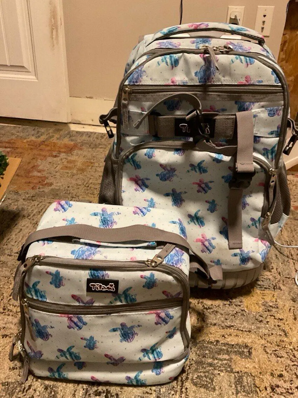 Tilami Blue Turtle Rolling Backpack 19 inch with Lunch Bag