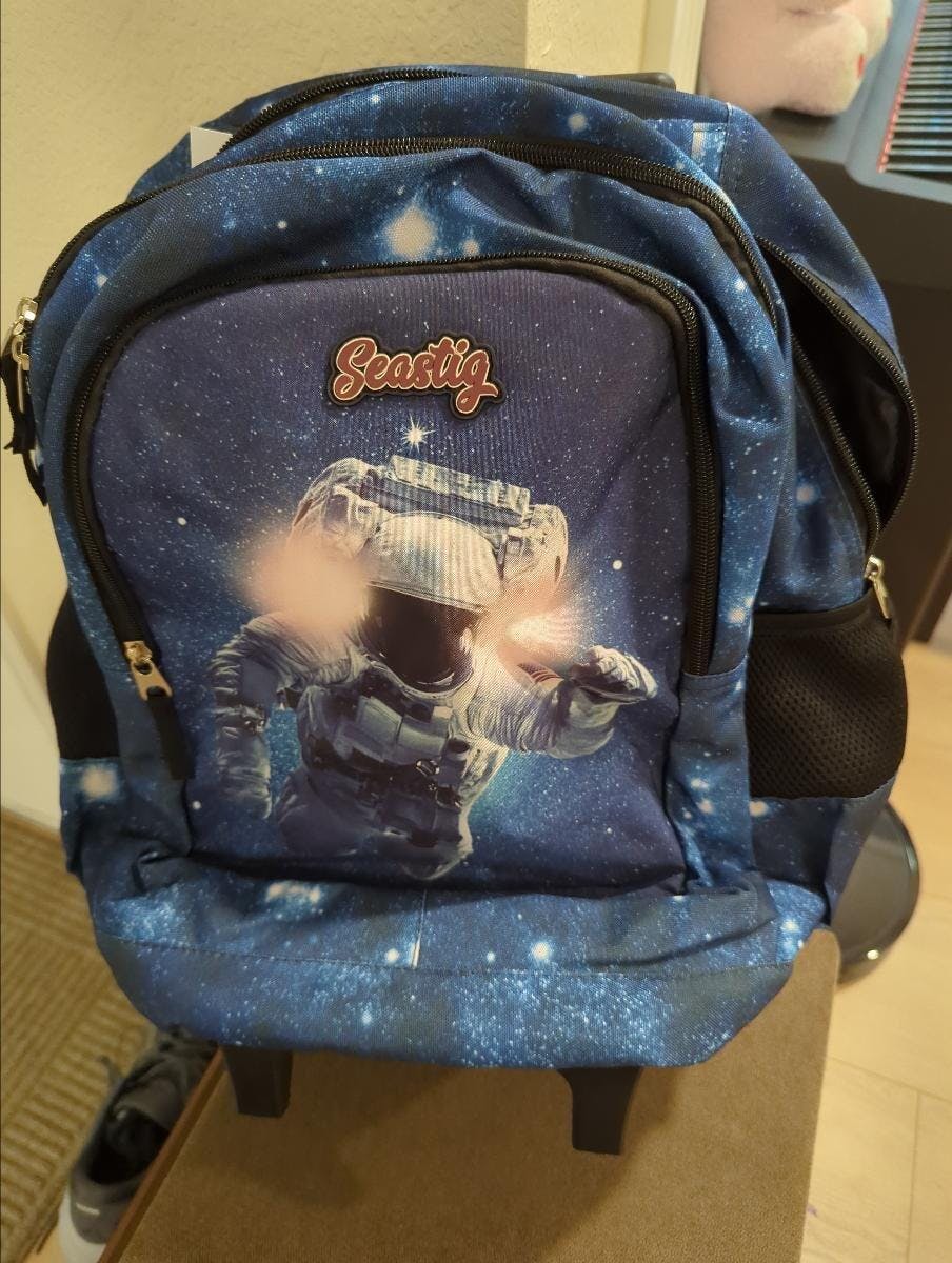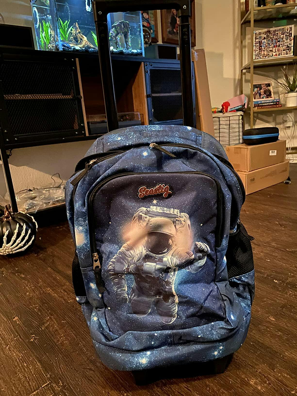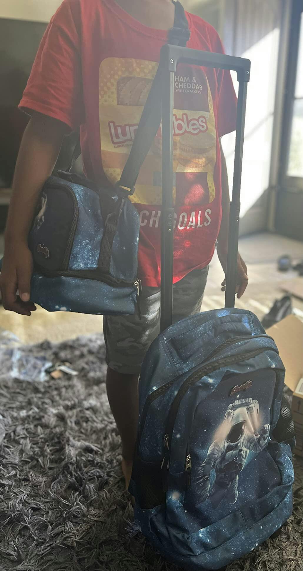 Seastig Blue Cosmonaut 18 inch Rolling Backpack with Lunch Bag and Pencil Case Set