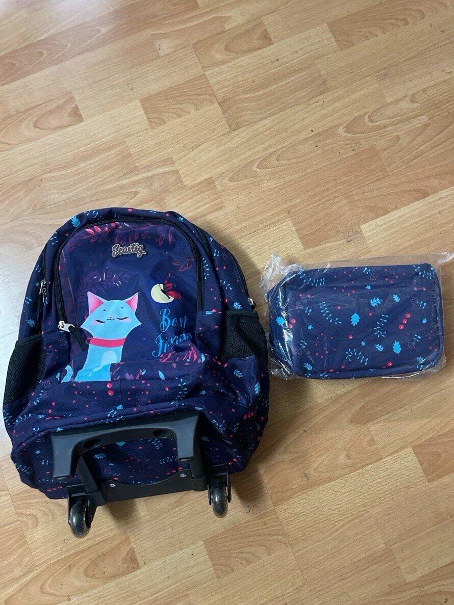 Seastig Purple Cat 18 inch Rolling Backpack with Lunch Bag and Pencil Case Set