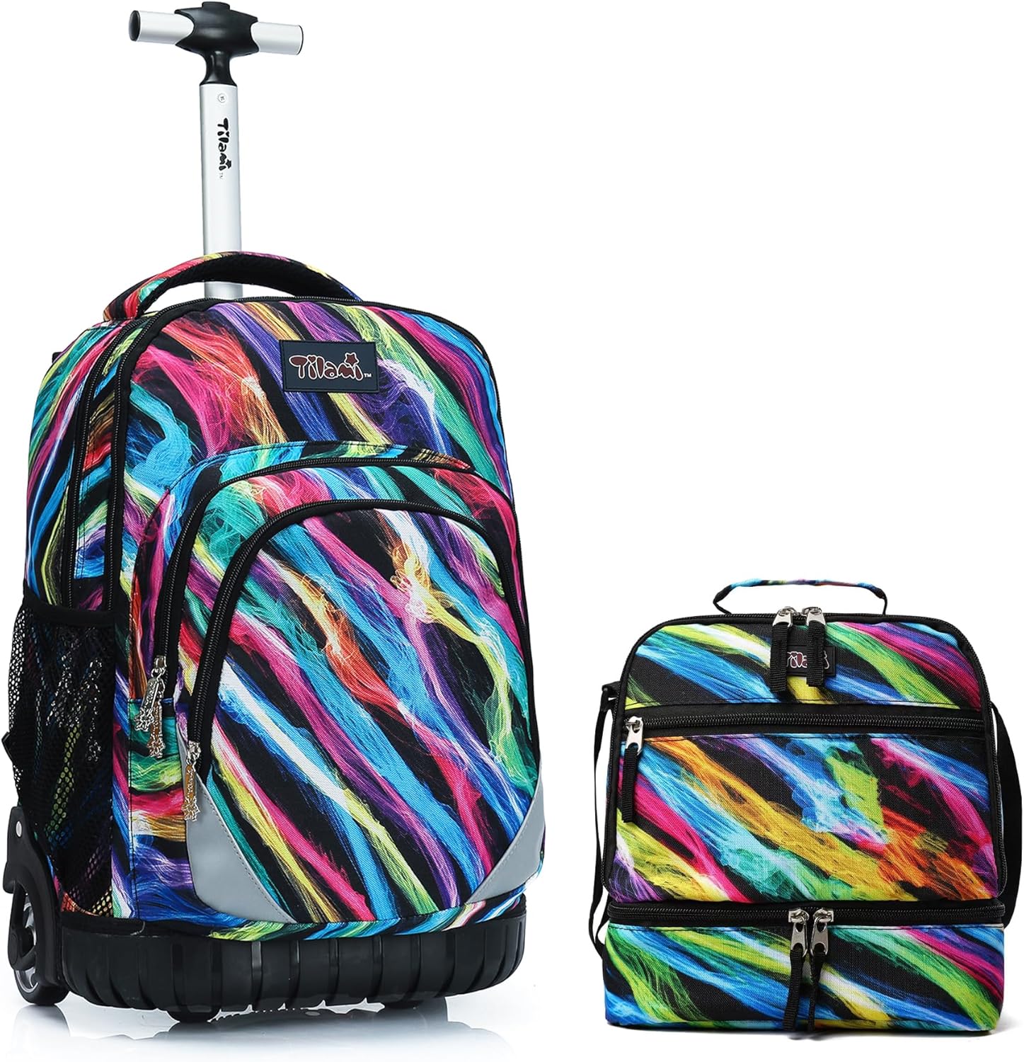 Tilami Colorful Stripes 19 inch Rolling Backpack with Matching Lunch Bag