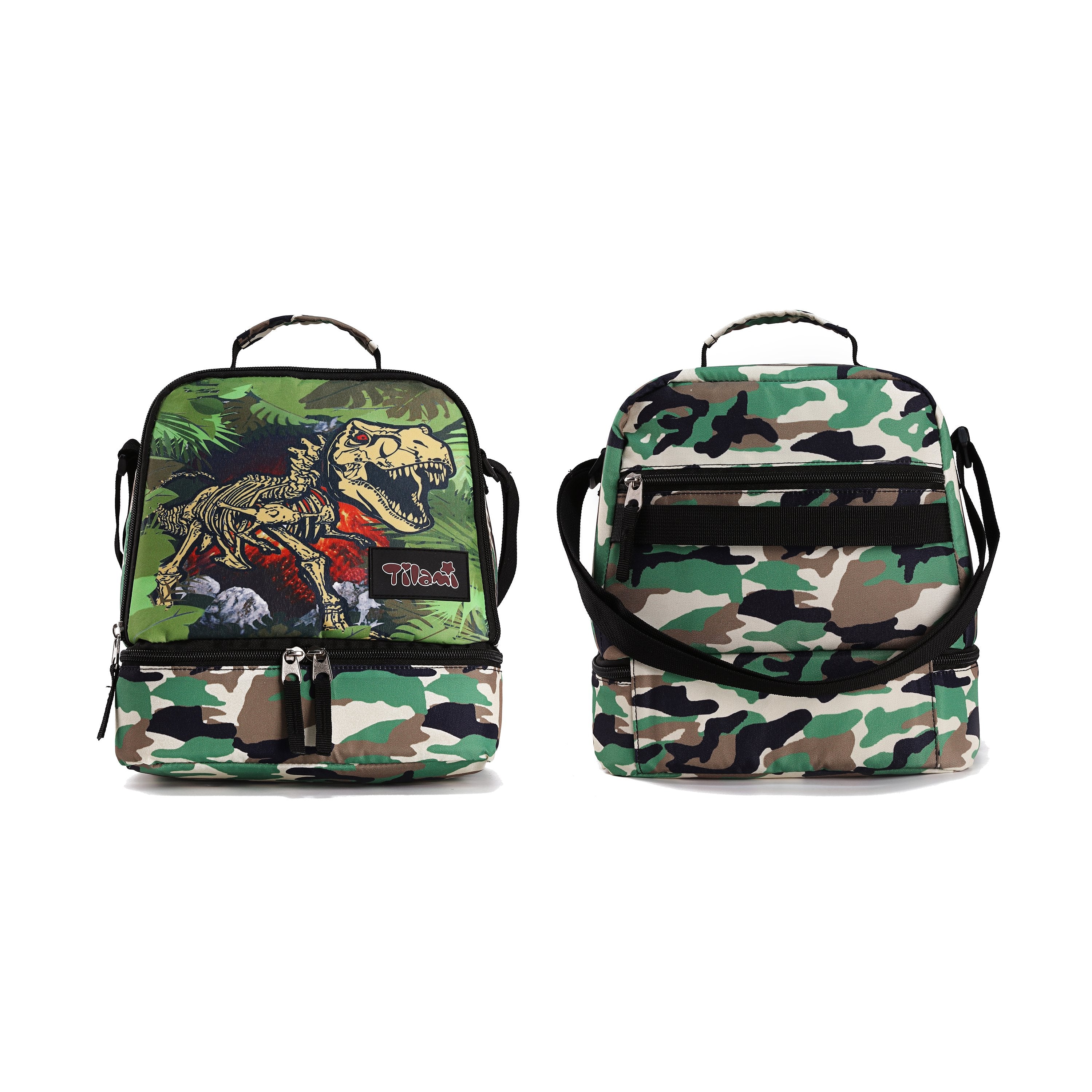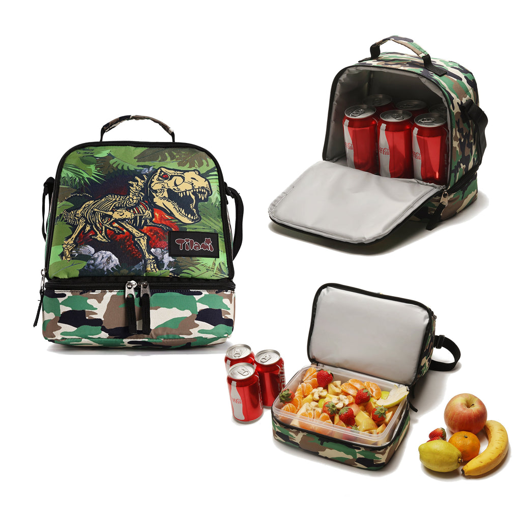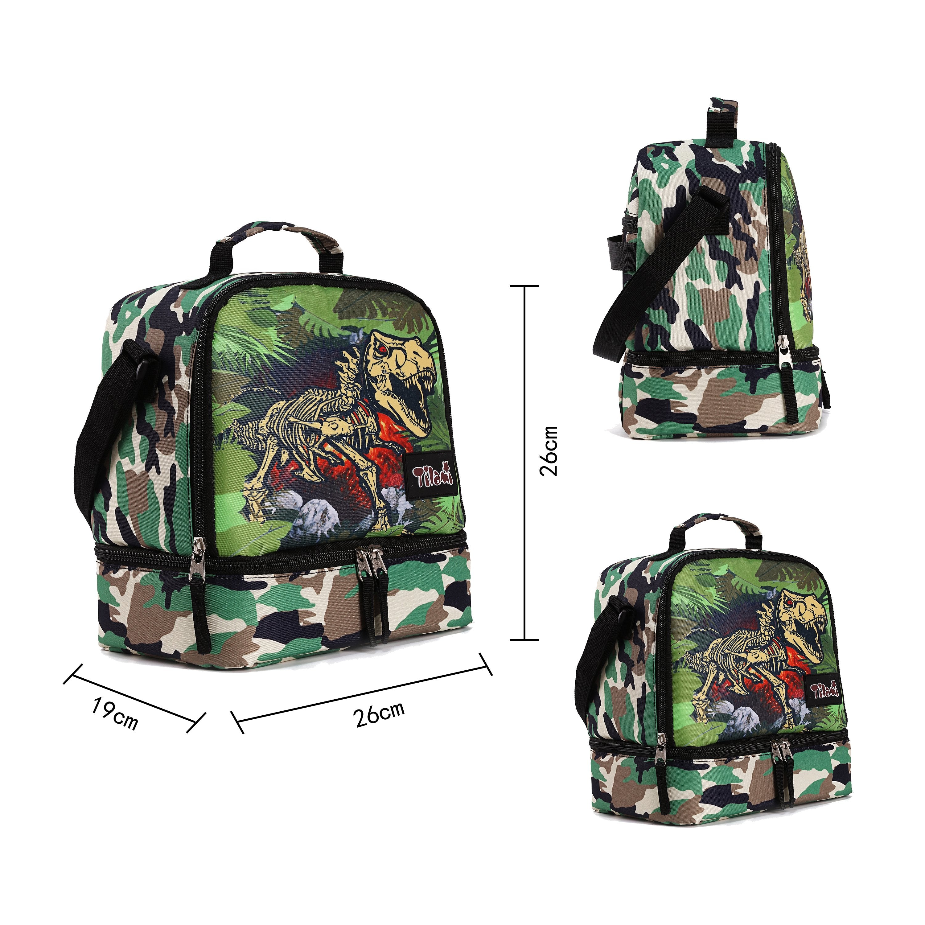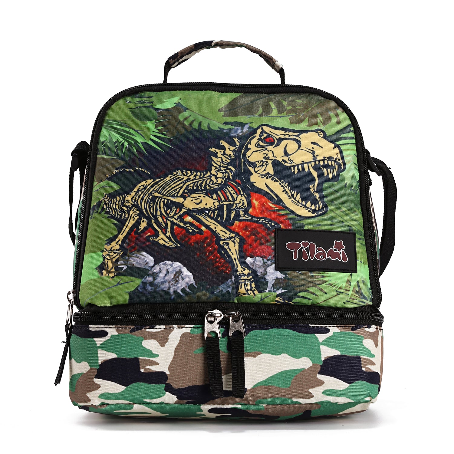 Tilami Green Dinosaur Lunch Bags Adjustable Strap Kids Cooler Bags