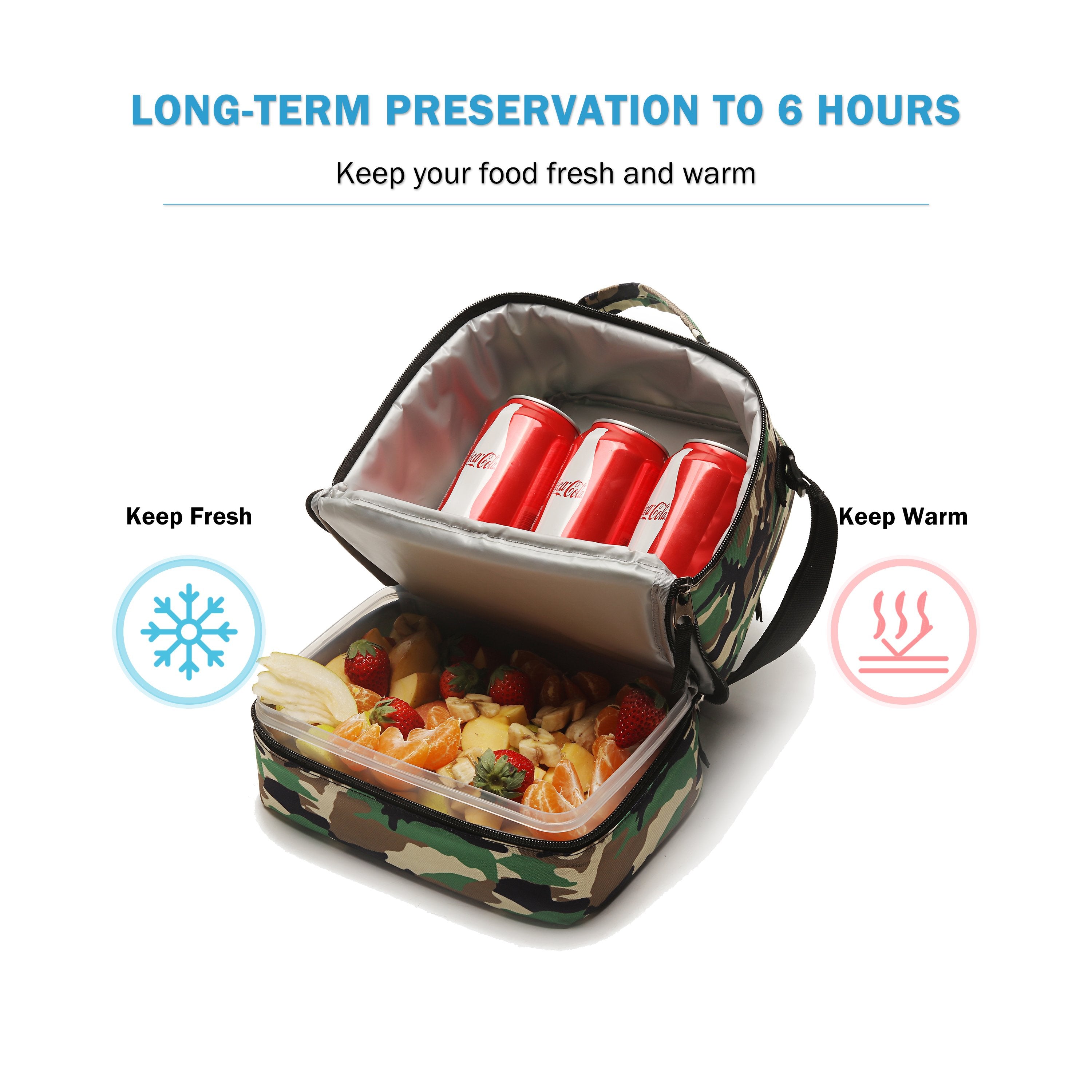 • KEEP Warm/Cold, Keep Fresh - This Lunch bag can keep food fresh, cold or warm. Normal time of heat preservation or cold insulation up to 4-6 hours, allows you to enjoy your health and fresh food anytime anywhere.