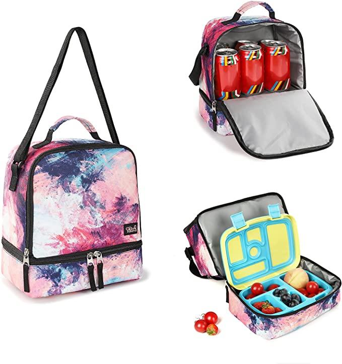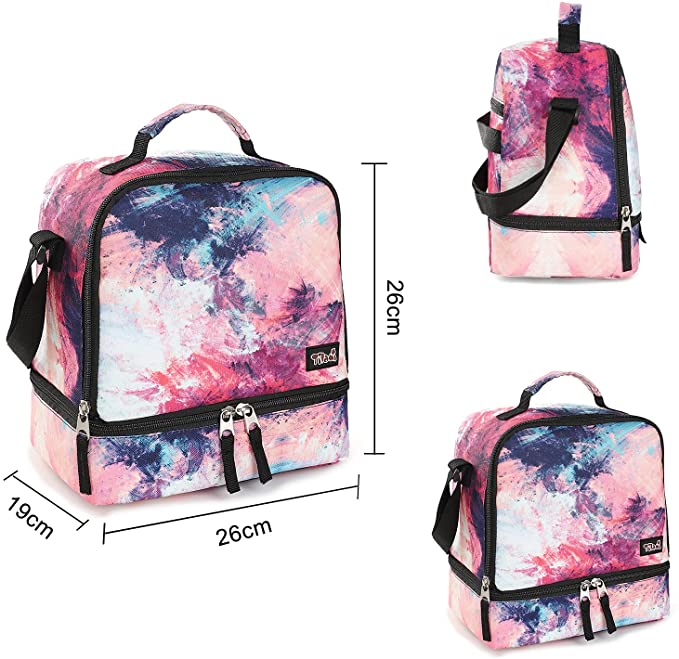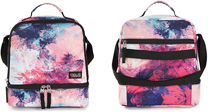 Tilami Pink Graffiti Lunch Bags Insulated Adjustable Strap Zipper Kids Cooler Bags